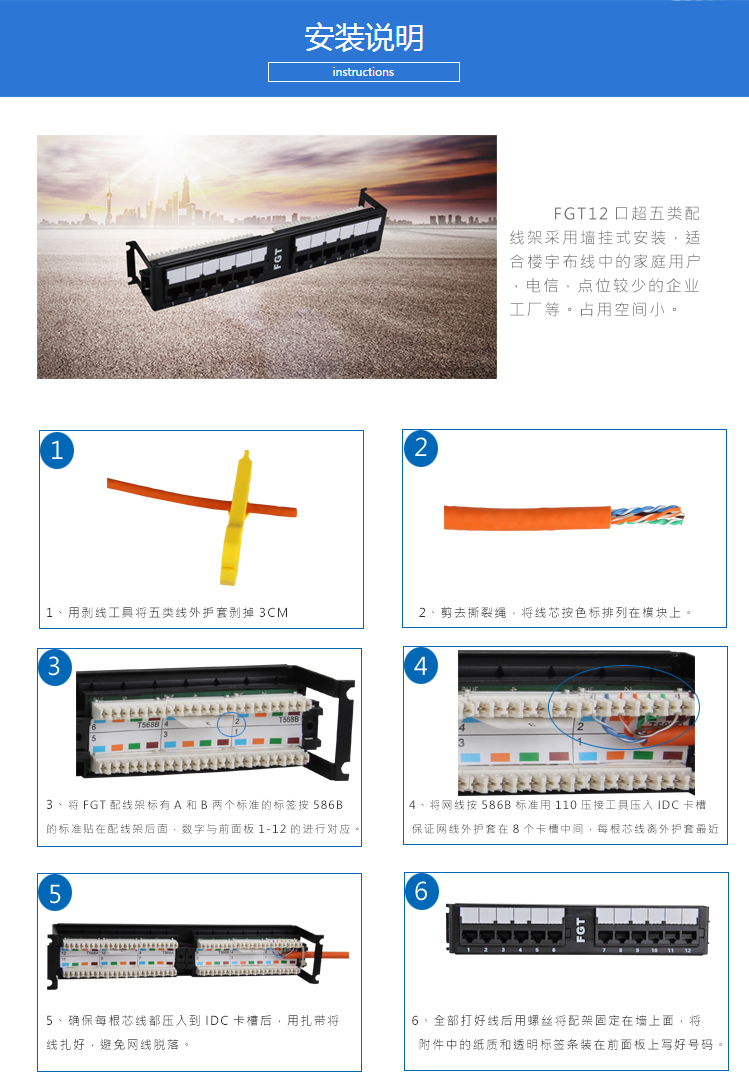 CAT .5e UTP patch panel Implementation standards: YD/T 926.3, ISO/IEC 11801, ANSI/TIA-568.2-D. Support voice communication system, 10BASE-T, 16Mbps, 100BASE-T, 155Mbps and 622 Mbps ATM, 1000 Mbps, multimedia and other high-speed applications.