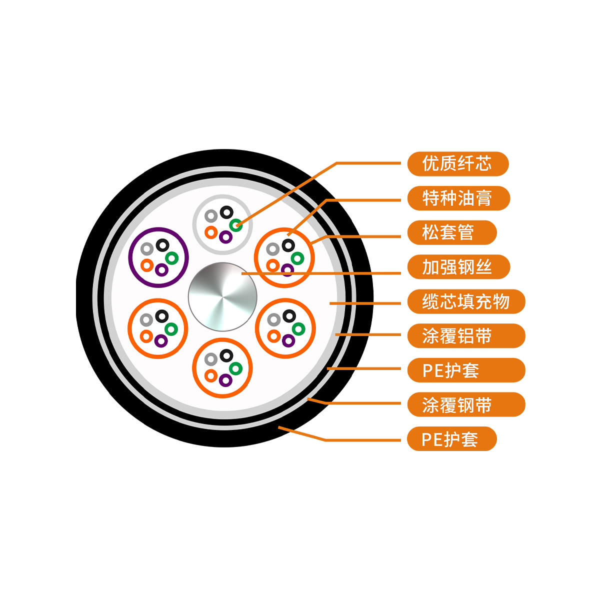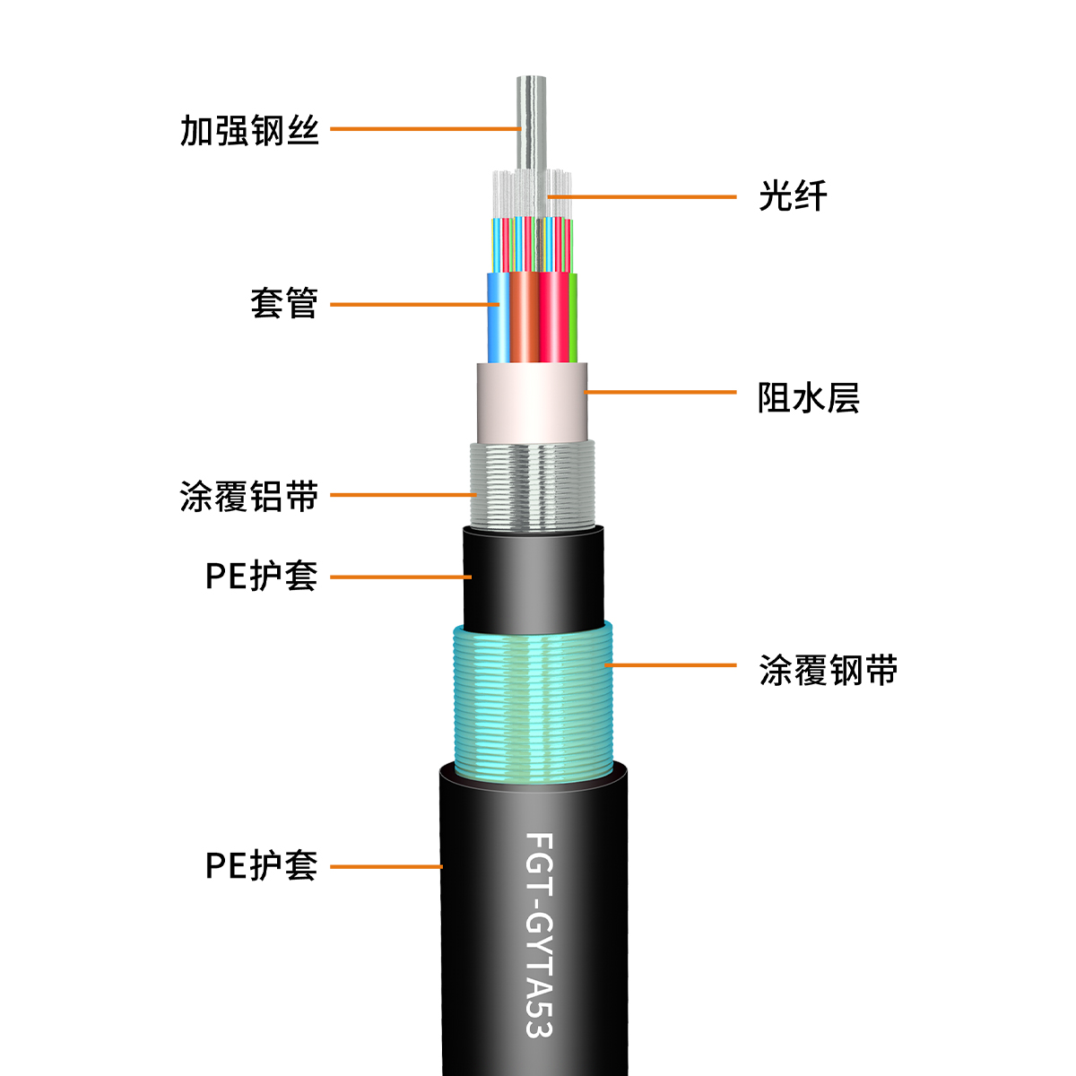 6芯室外多模GYTA53重鎧光纜黑色PE